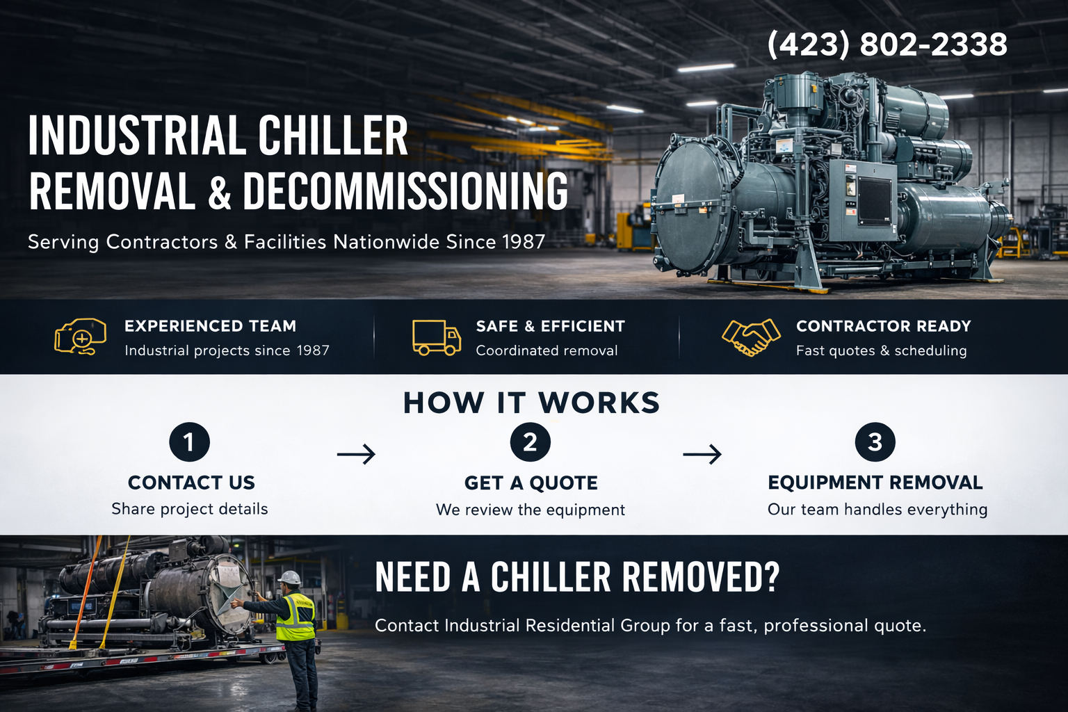 Industrial Residential Group works with contractors nationwide to coordinate safe and efficient chiller removal.